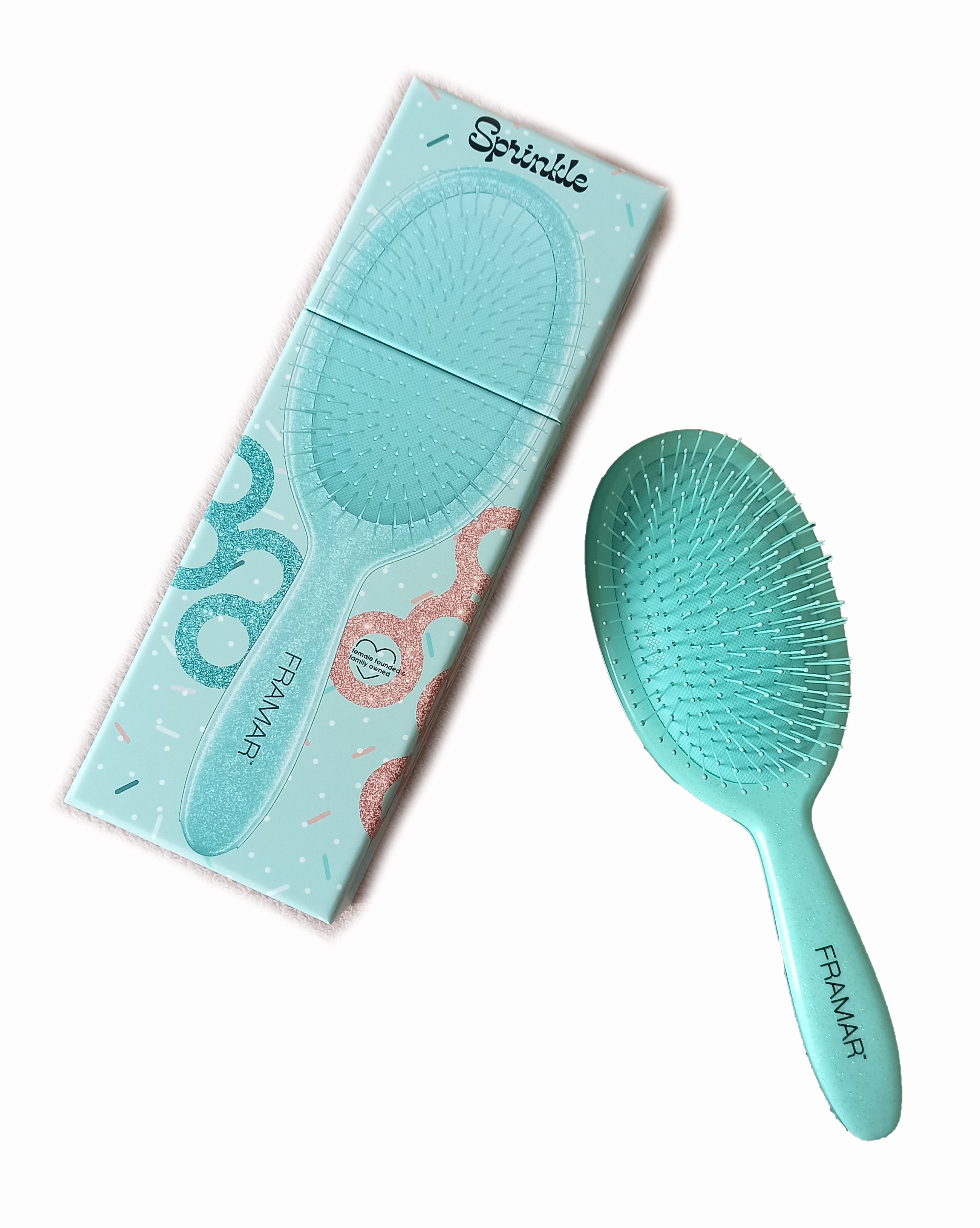 Třpytivý kartáč Sprinkle s flexibilními štětinami šetrně rozčeše i zacuchané vlasy bez tahání, vhodný pro všechny typy vlasů.
